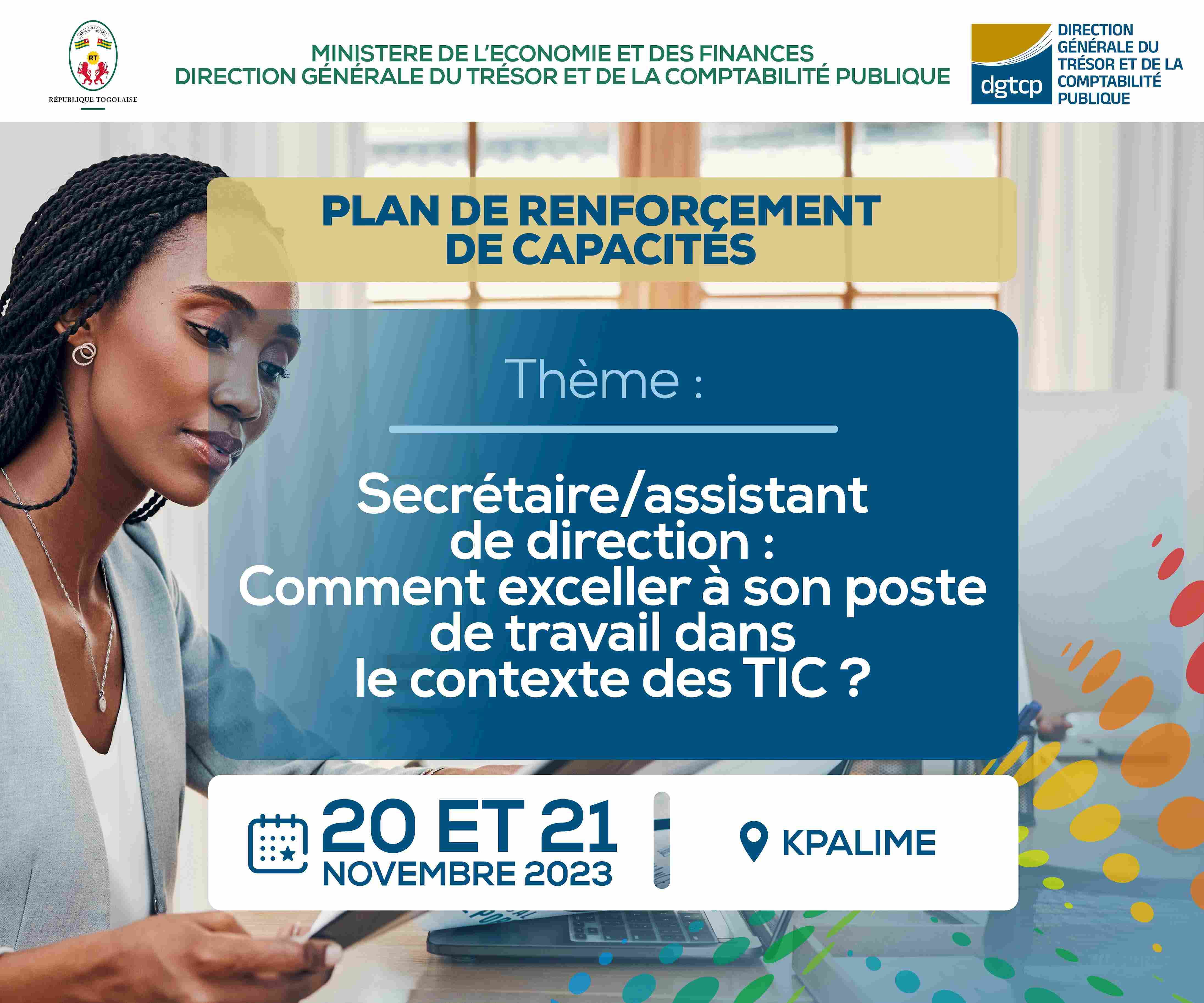 Dans le but d’accroître la performance organisationnelle de la Direction Générale du Trésor et de la Comptabilité Publique, un plan de formation de renforcement des capacités des secrétaires et assistants de direction s’est tenue du 20 au 21 novembre 2023 à kpalimé en vue d’améliorer leur performance et leur productivité au poste.